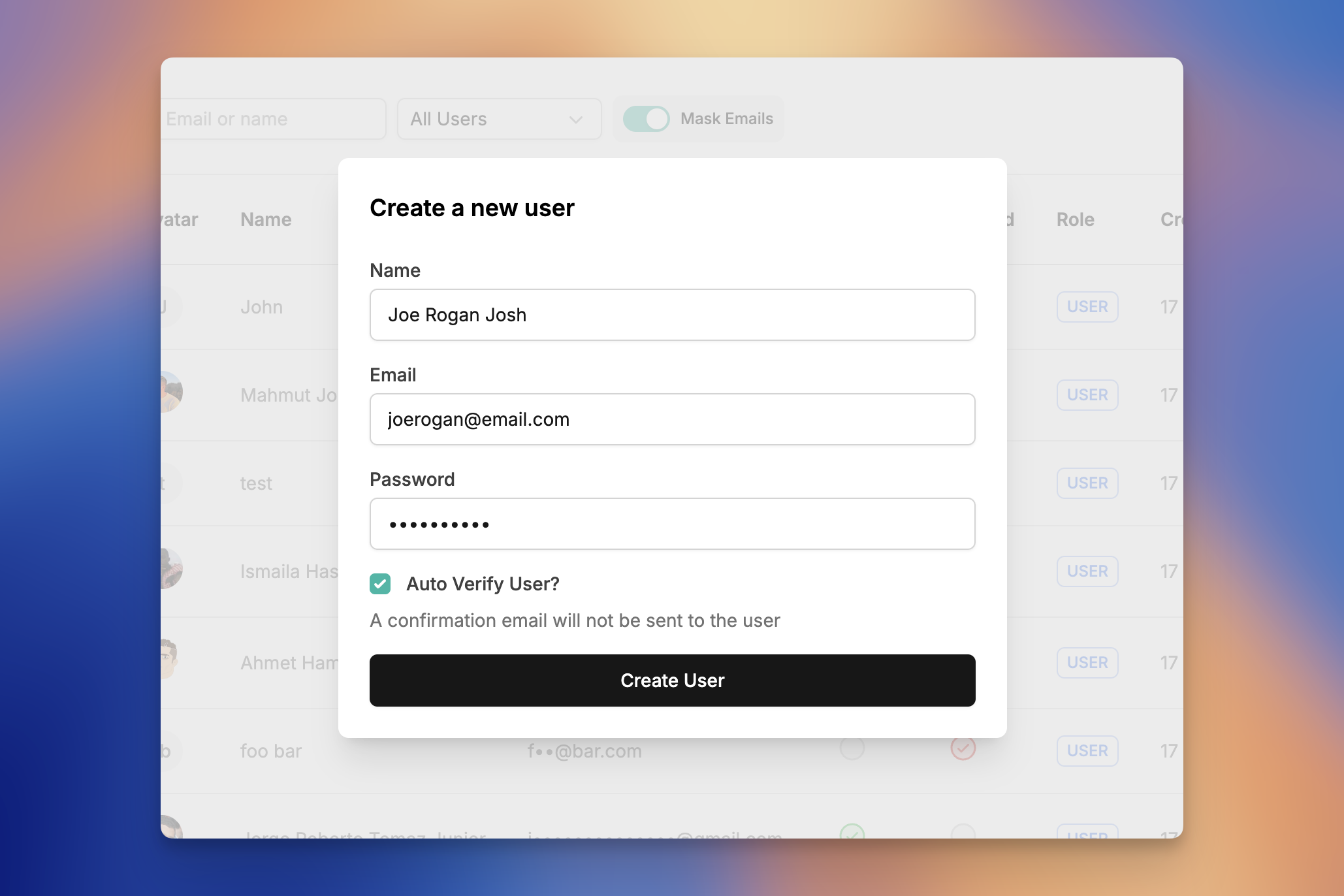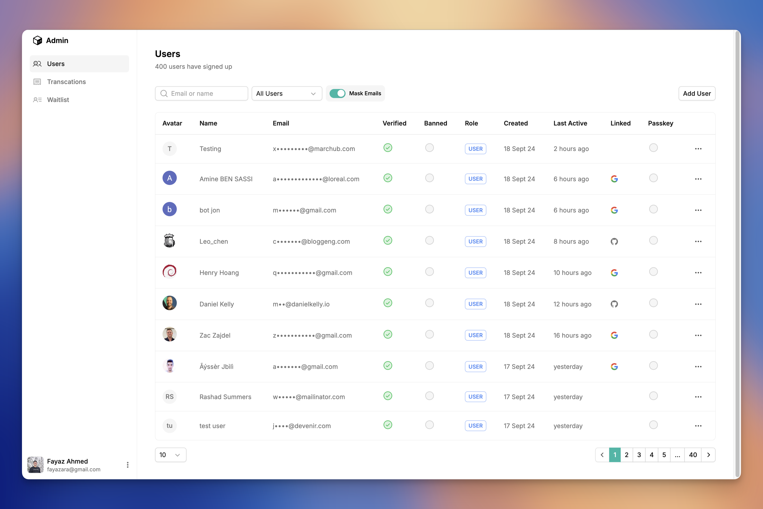 - View users, emails, their social accounts connected.